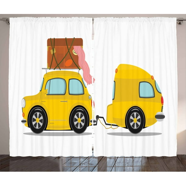 Happy Camper Curtains 2 Panels Set Retro Car With Trailer Cartoon Outdoor Activity Theme Vacation Illustration Window Drapes For Living Room Bedroom 108w X 96l Inches Multicolor By Ambesonne Walmart Com